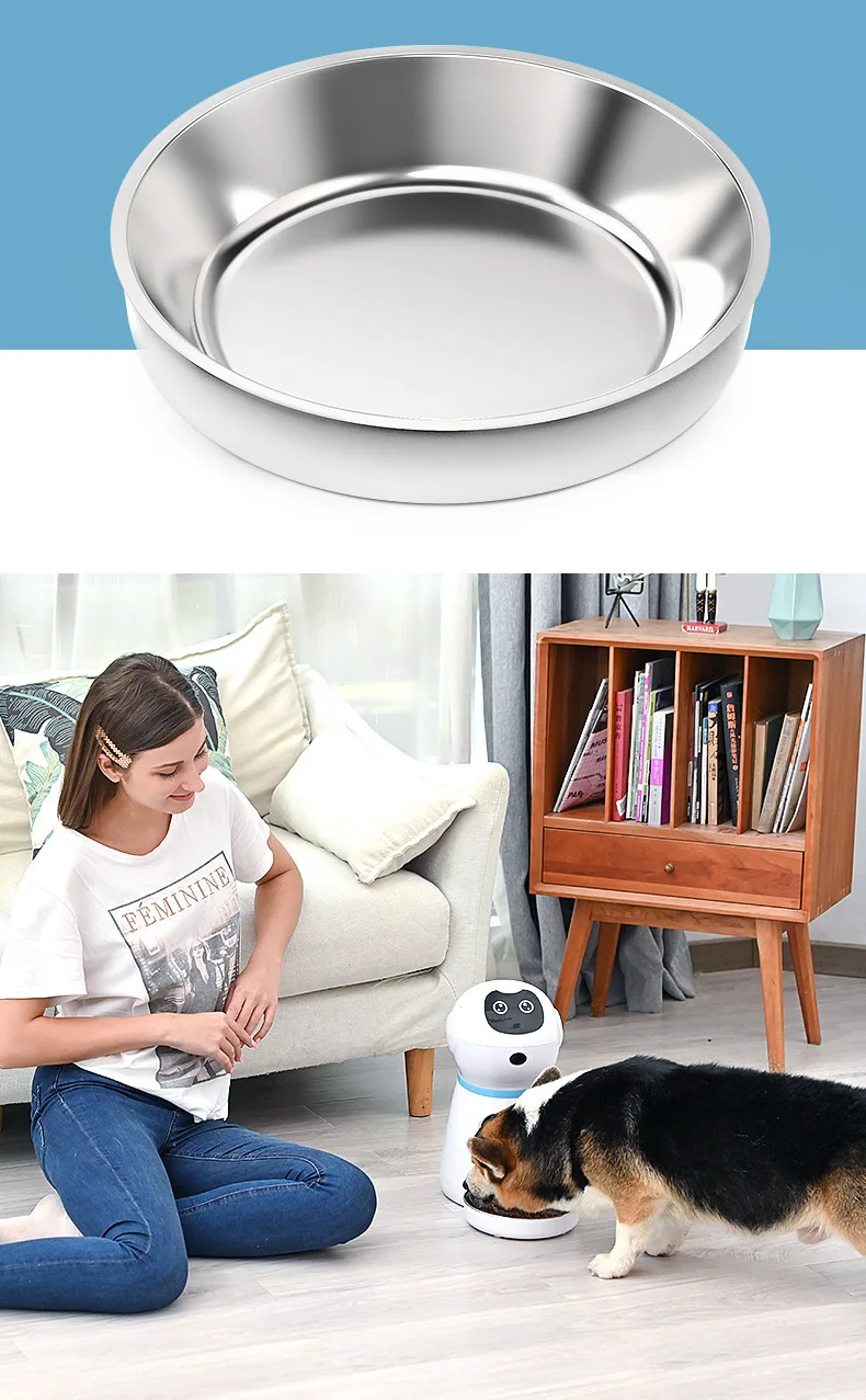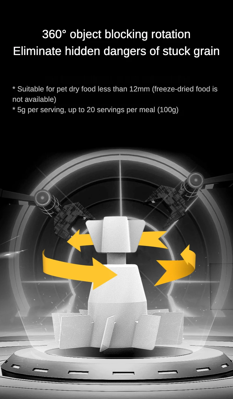 Este alimentador automático para animais de estimação possui sensor infravermelho embutido, quando a tigela é preenchida com mais de 1 centímetro cúbico de tamanho de comida seca, a máquina parará automaticamente para evitar que a comida do animal entupa ou transborde.