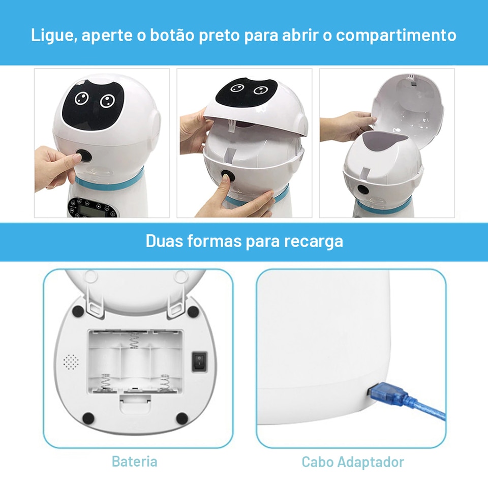 1 Alimentador Automático PET USB 3,5L Robotizado Com Registro De Voz